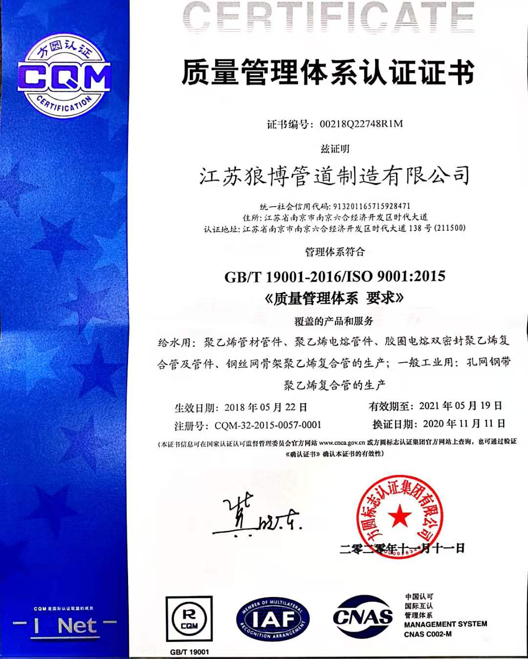 研发中心:公司多年来始终以创新作为发展的第一动力。在产品科技研发上自立自强,不断培育、引进专项人才,整合优秀的研发、生产、终端应用等资源。并联合国内多所高等院校和设计研究院,成立了“江苏狼博产学研合作基地”,打造了狼博“工程材料与结构管道研究中心”。